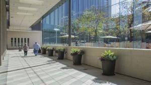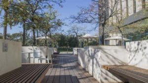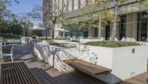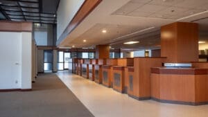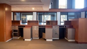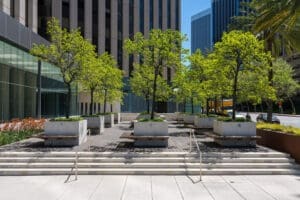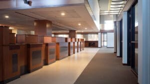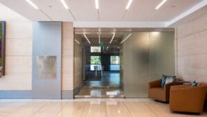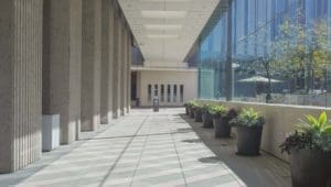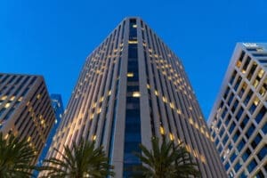 1800 – 1840 Century Park East is located at the corner of Century Park East and Santa Monica Blvd. The two towers are just a few minutes from 20th Century Fox Studios. With impressive floor-to-ceiling windows and a unique exterior, the building features a fantastic rooftop gym, a tennis court, and an elegant rooftop lounge. A vacant bank space with a warm wood-finished teller counter, large windows looking out to the street, and a vault is located off the lobby of 1800 Century Park East Tower. The lower-level parking garage offers a valet drive-up, perfect for your next car commercial with total control on weekend shoots.