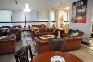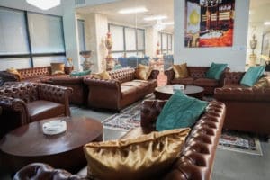 In the heart of Woodland Hills, 21900 Burbank Blvd. is a contemporary 3-story building featuring multiple dressed spaces available for filming. In addition, there is an impressive granite-accented two-story lobby. One of this property’s highlights in Suite 105 is an 8,000-square-foot dressed cigar lounge with a walk-in humidor that can hold up to 1,000 cigars. This building has ample parking in its plaza and subterranean levels, perfect for an industry crew. Also, the building is located one block from the 101 freeway and six miles west of the 405 freeway. It is within a one-mile radius of Warner Center Marriot, Hilton Hotel, and various retail and restaurants. This office building is available for weekday filming.
