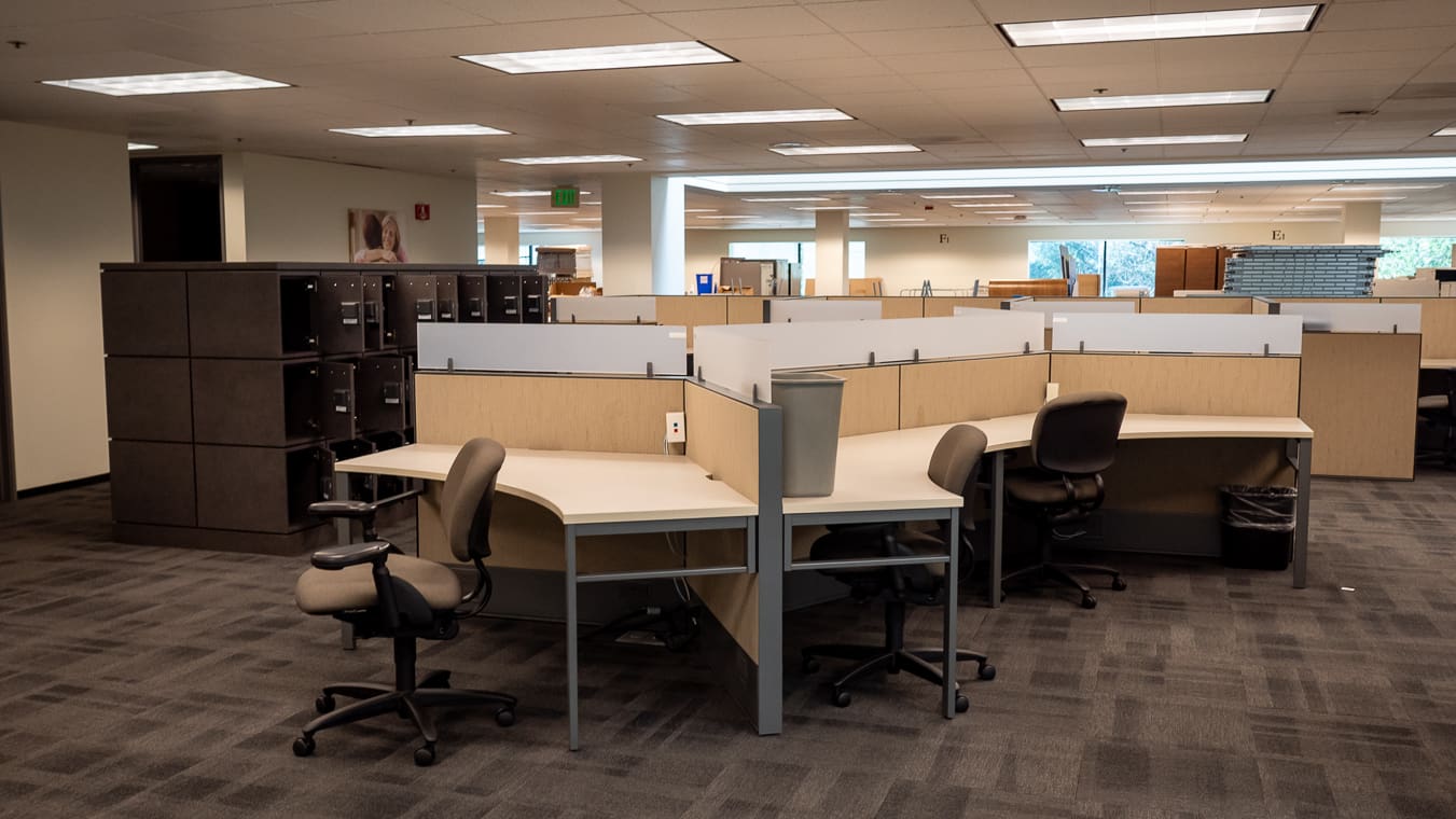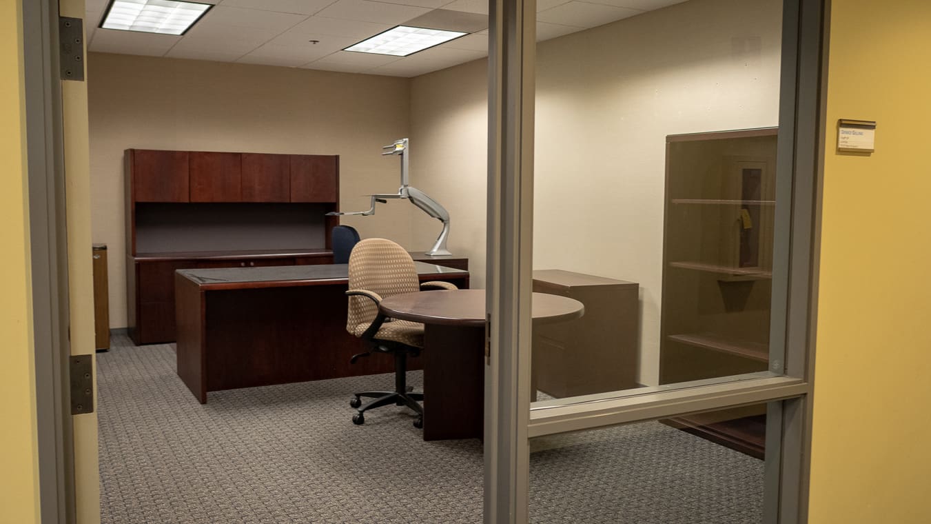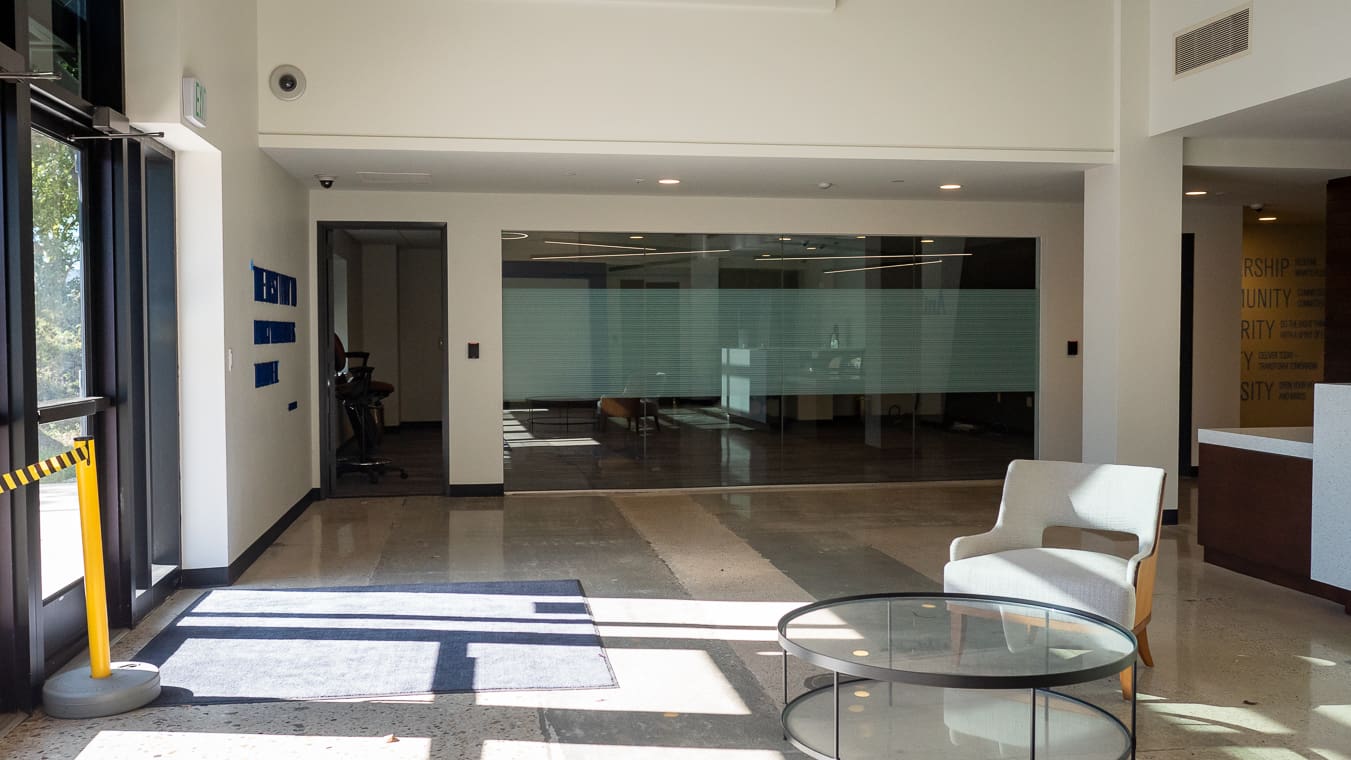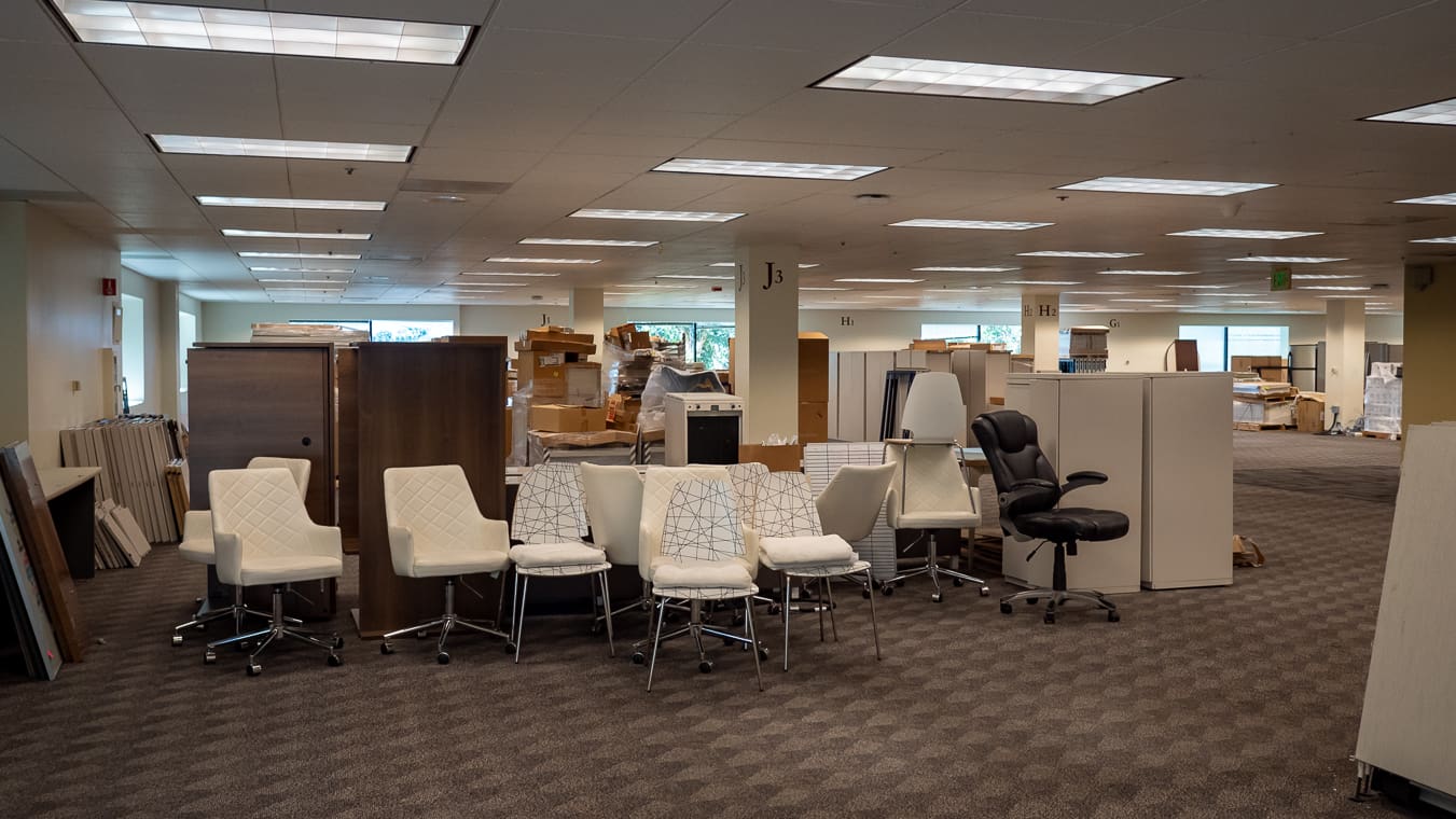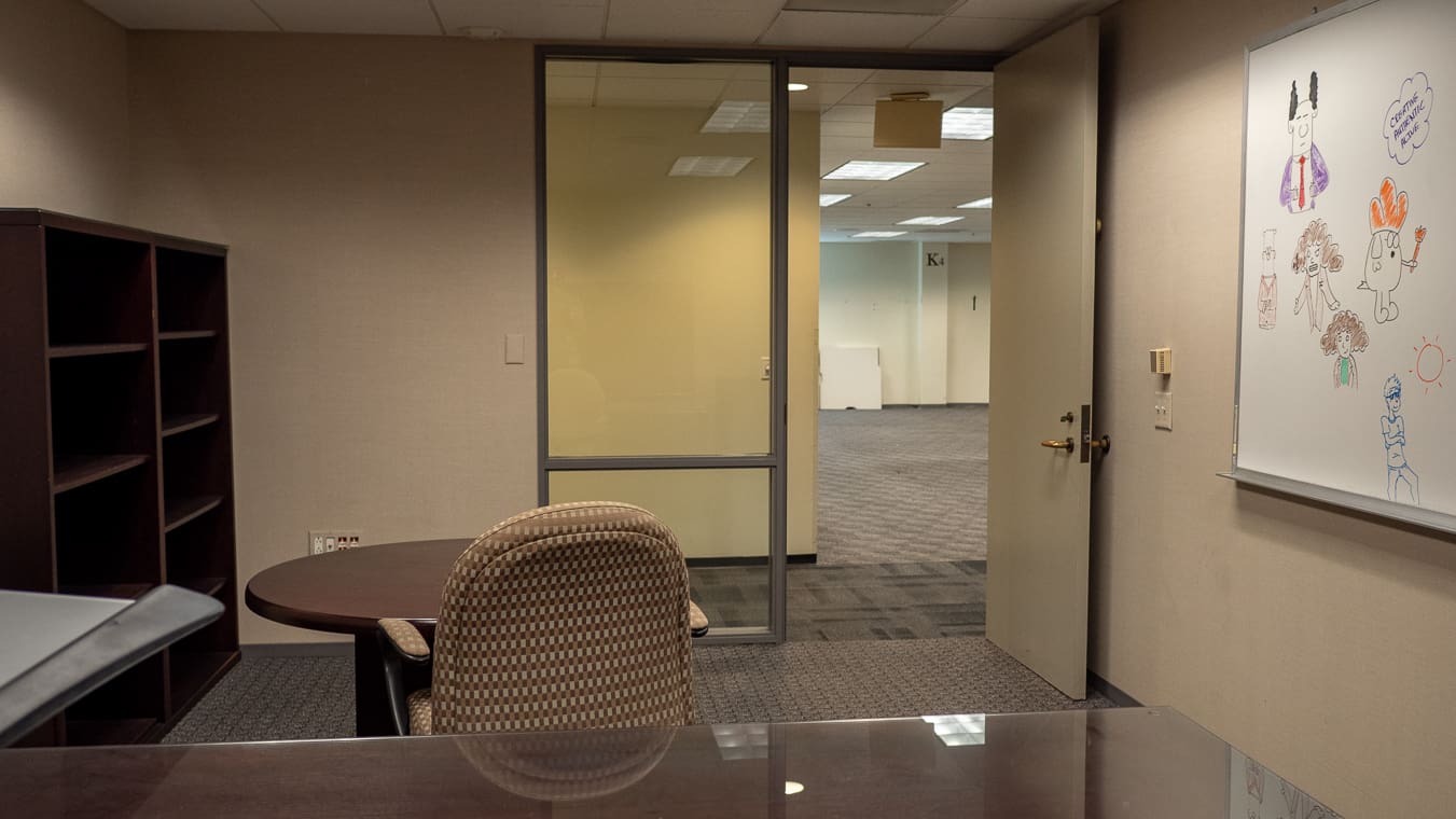4553 La Tienda in Westlake Village is a fully dressed office space that includes furnishings throughout. This two-story office complex is situated in a campus-like setting. It features a first-floor grand staircase, open-plan workspaces, various cubicle configurations, a conference room, private offices, a cafeteria, a gym, lounge areas, and an outdoor patio and courtyard. Formerly occupied by Anthem Blue Cross, this office was built in 1989. The property is approximately 113,00 square feet and is on a 13.58-acre lot. This often-requested location also includes an enormous parking lot for cast, crew, and basecamp. The building is unoccupied and open for weekday filming.