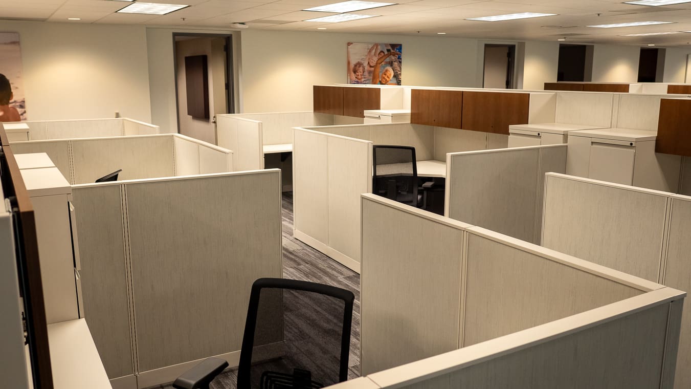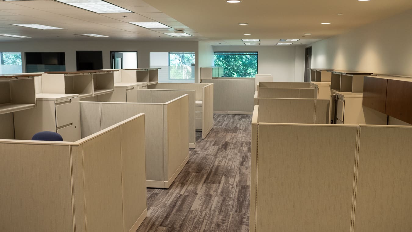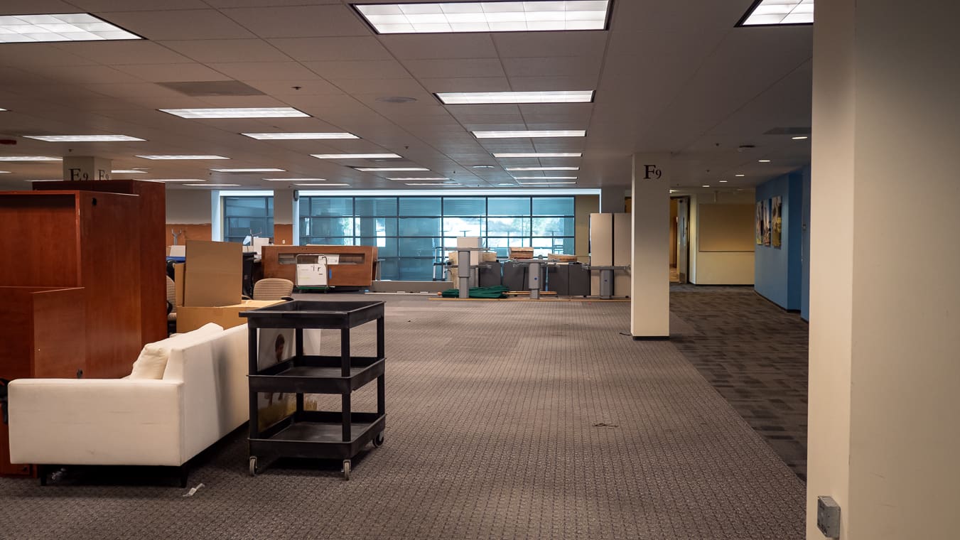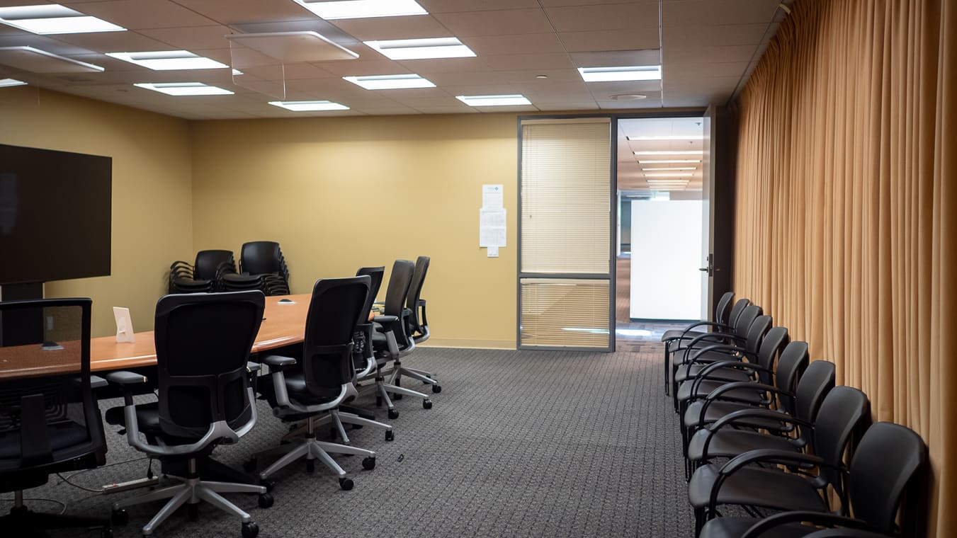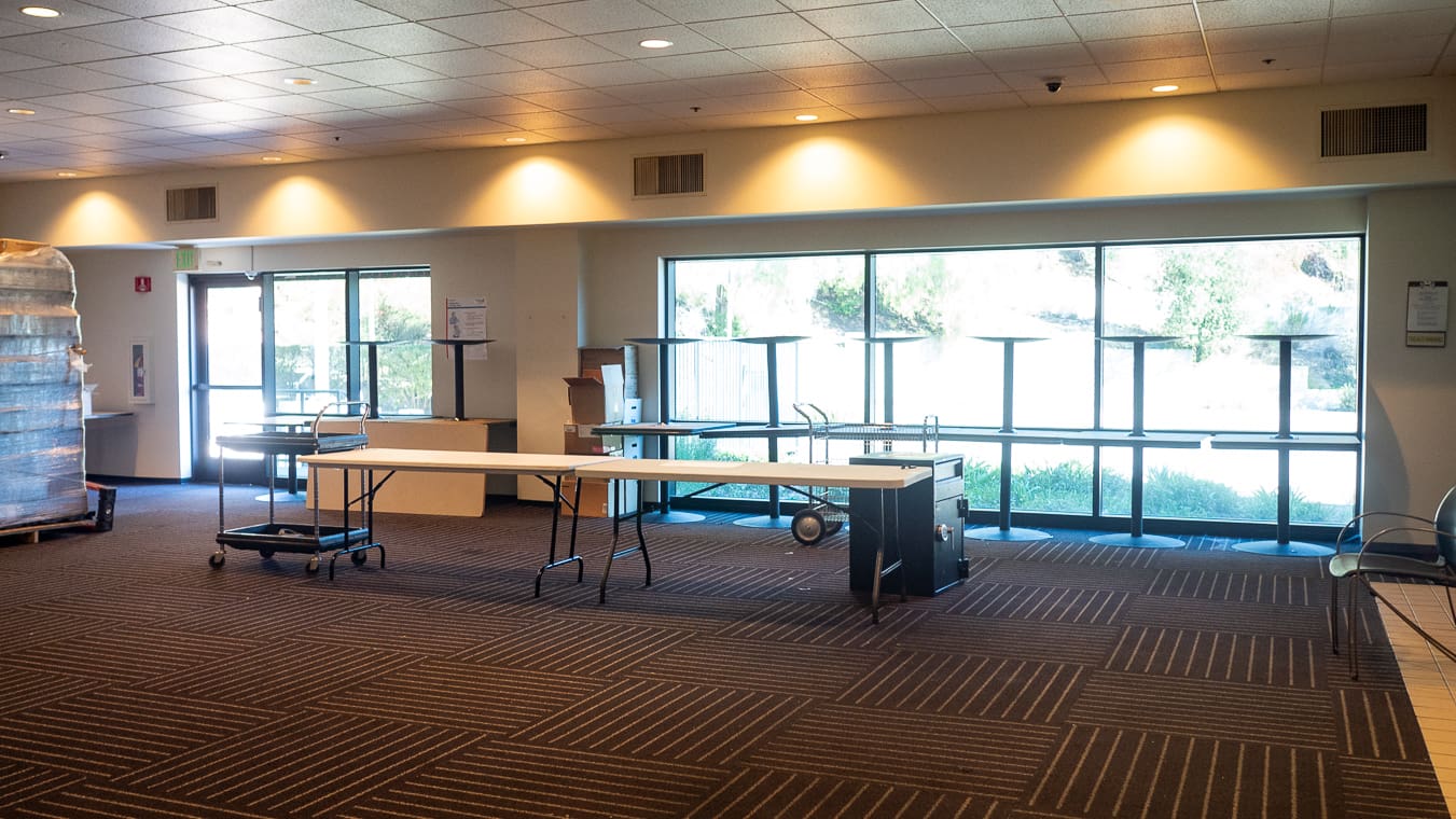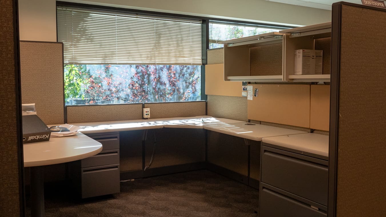 4553 La Tienda in Westlake Village is a fully dressed office space that includes furnishings throughout. This two-story office complex is situated in a campus-like setting. It features a first-floor grand staircase, open-plan workspaces, various cubicle configurations, a conference room, private offices, a cafeteria, a gym, lounge areas, and an outdoor patio and courtyard. Formerly occupied by Anthem Blue Cross, this office was built in 1989. The property is approximately 113,00 square feet and is on a 13.58-acre lot. This often-requested location also includes an enormous parking lot for cast, crew, and basecamp. The building is unoccupied and open for weekday filming.
