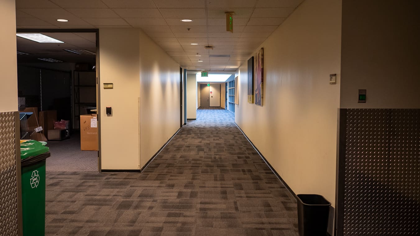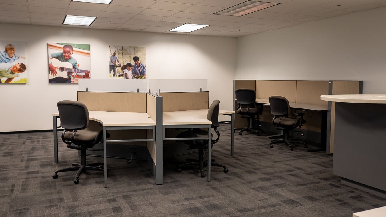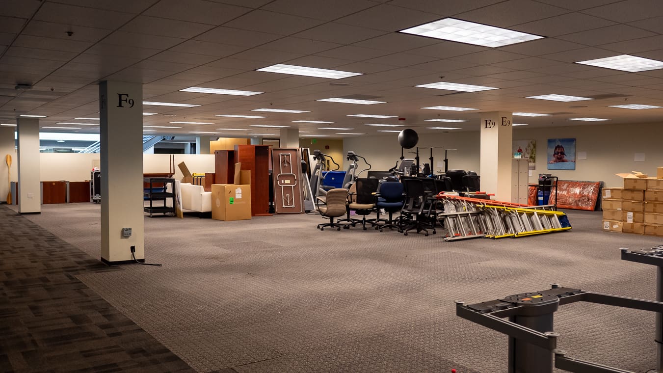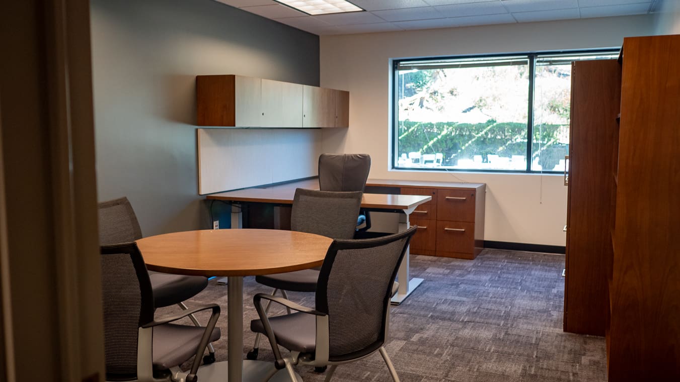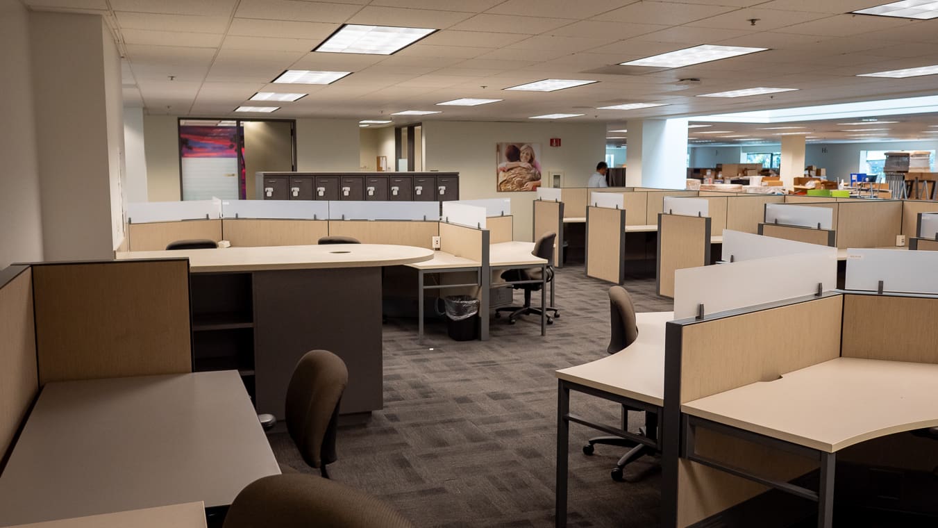 4553 La Tienda in Westlake Village is a fully dressed office space that includes furnishings throughout. This two-story office complex is situated in a campus-like setting. It features a first-floor grand staircase, open-plan workspaces, various cubicle configurations, a conference room, private offices, a cafeteria, a gym, lounge areas, and an outdoor patio and courtyard. Formerly occupied by Anthem Blue Cross, this office was built in 1989. The property is approximately 113,00 square feet and is on a 13.58-acre lot. This often-requested location also includes an enormous parking lot for cast, crew, and basecamp. The building is unoccupied and open for weekday filming.