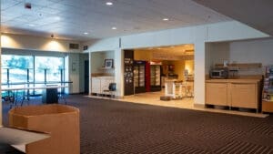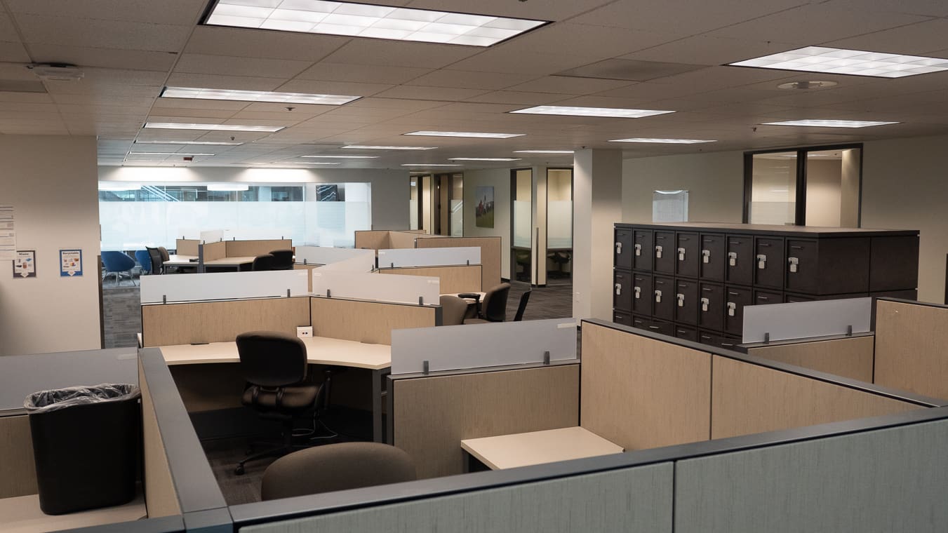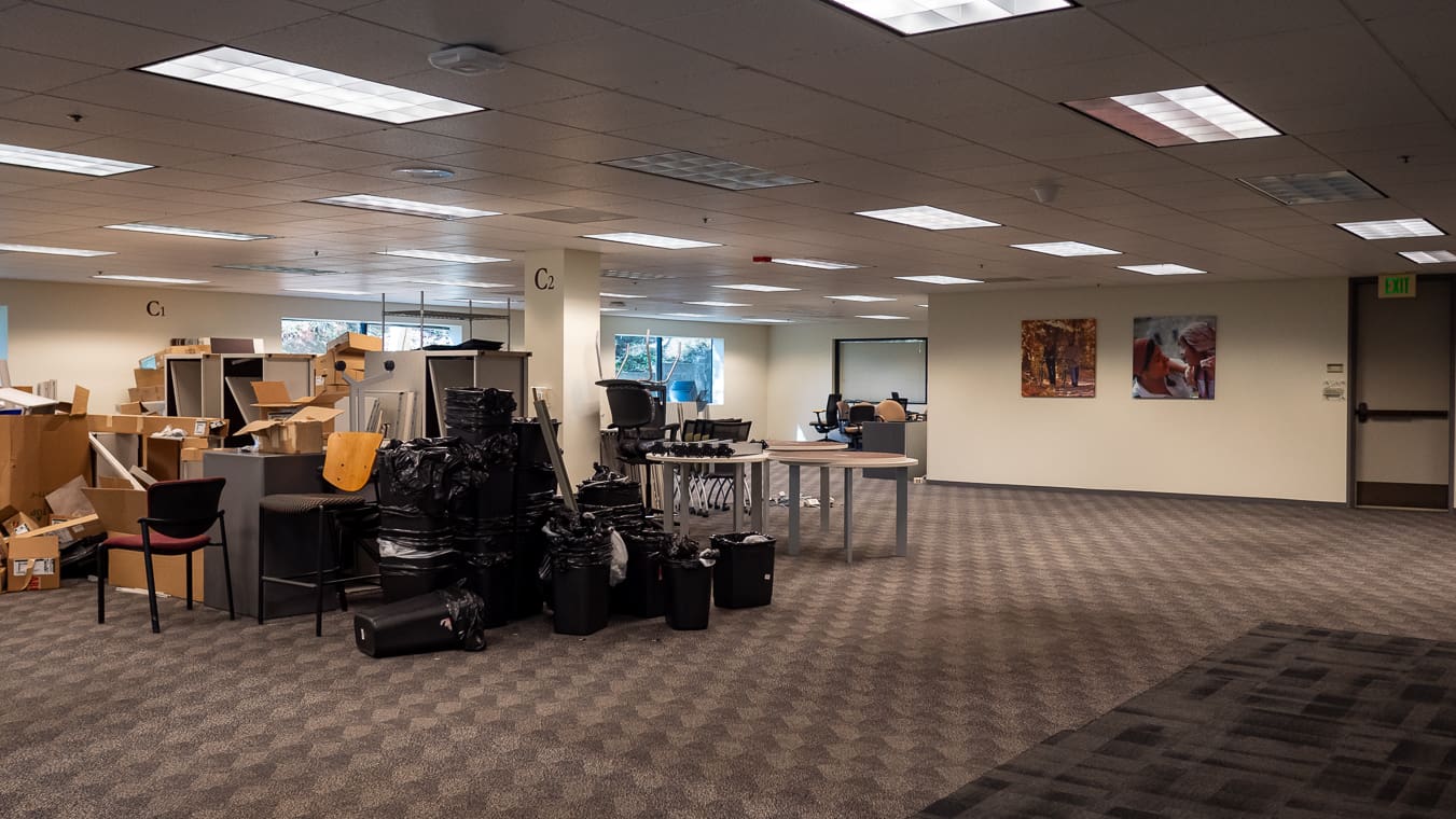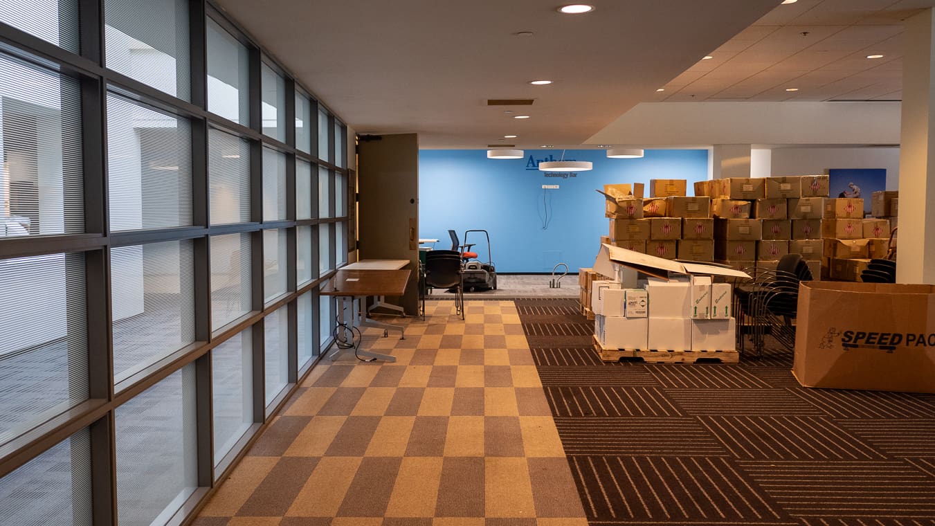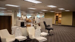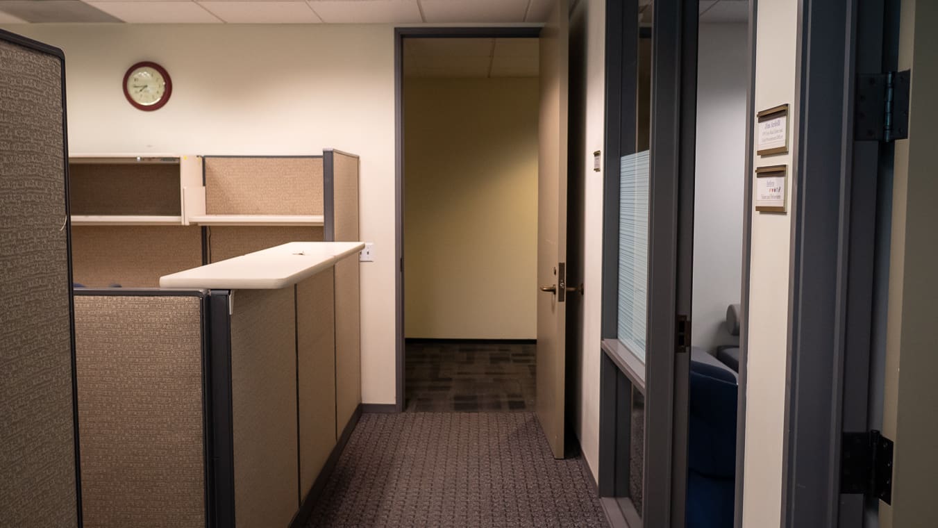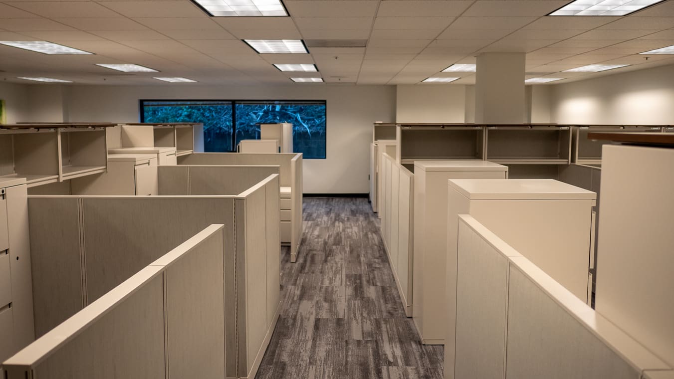 4553 La Tienda in Westlake Village is a fully dressed office space that includes furnishings throughout. This two-story office complex is situated in a campus-like setting. It features a first-floor grand staircase, open-plan workspaces, various cubicle configurations, a conference room, private offices, a cafeteria, a gym, lounge areas, and an outdoor patio and courtyard. Formerly occupied by Anthem Blue Cross, this office was built in 1989. The property is approximately 113,00 square feet and is on a 13.58-acre lot. This often-requested location also includes an enormous parking lot for cast, crew, and basecamp. The building is unoccupied and open for weekday filming.