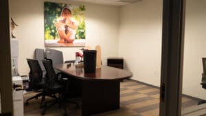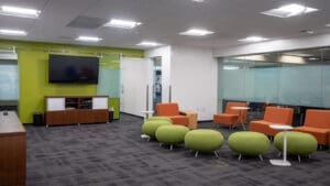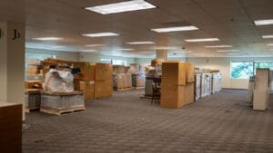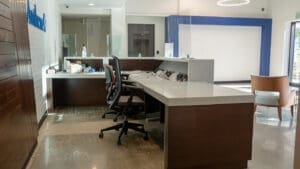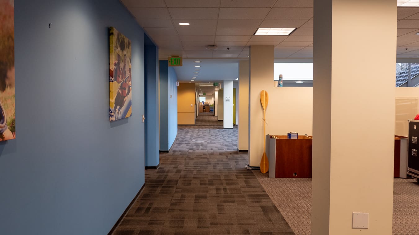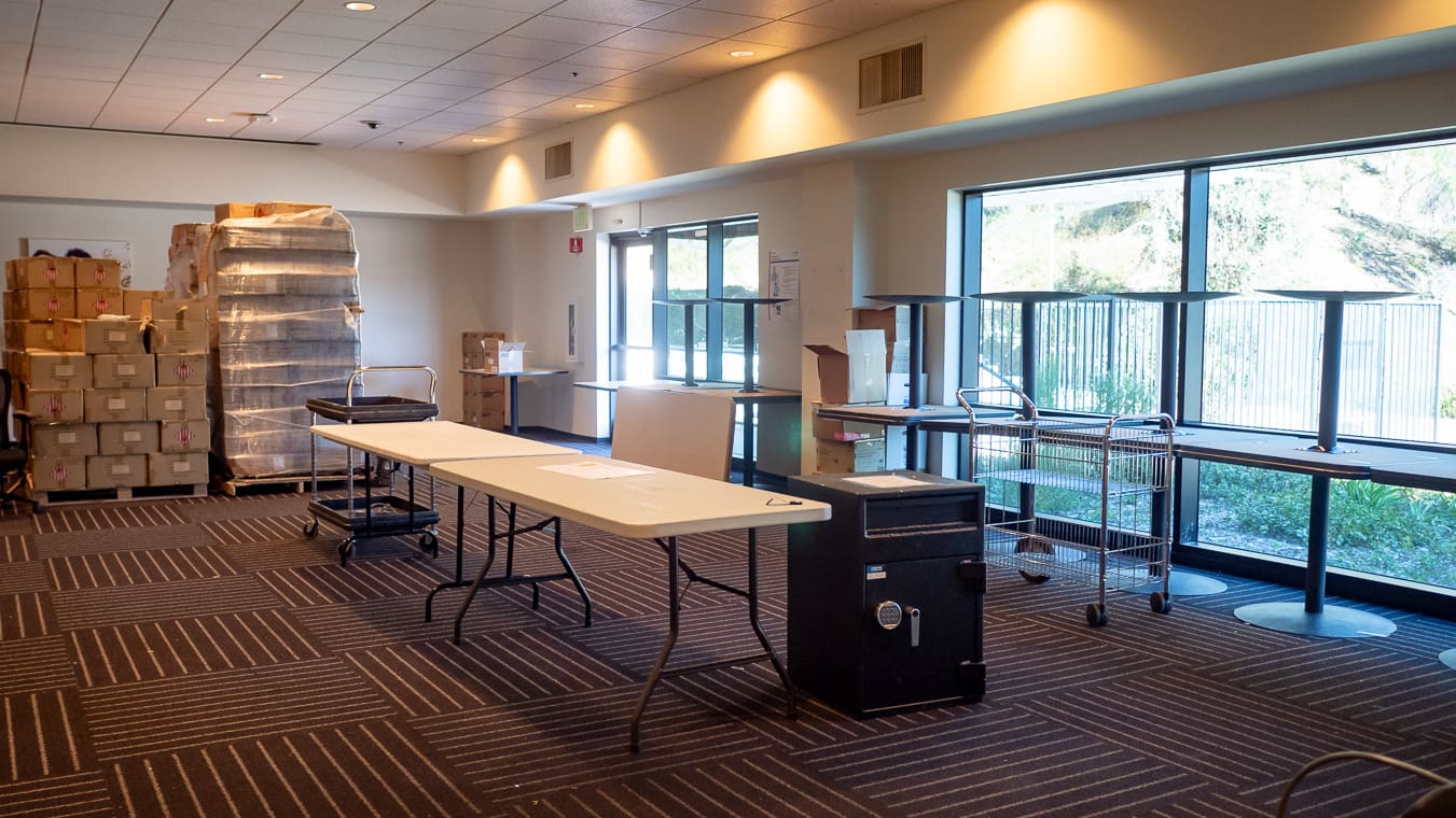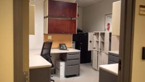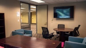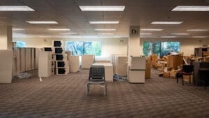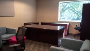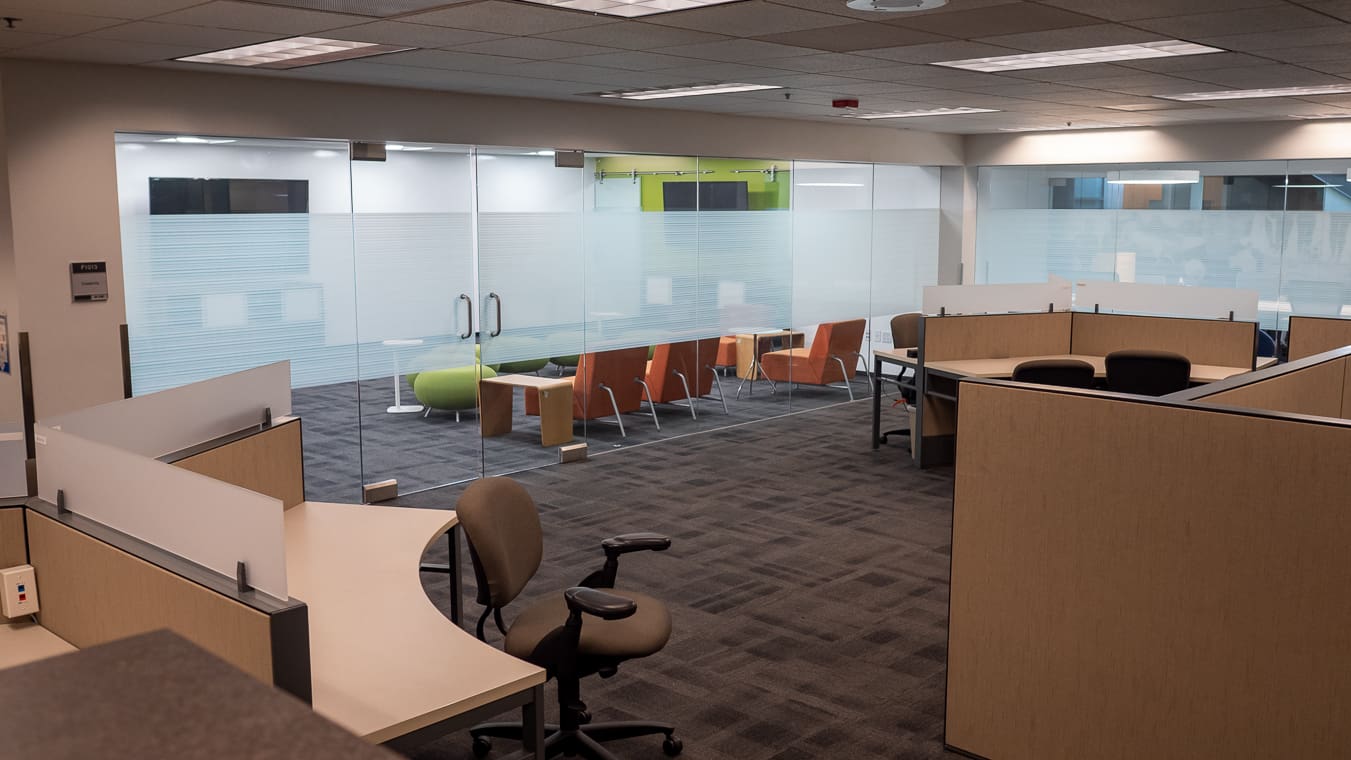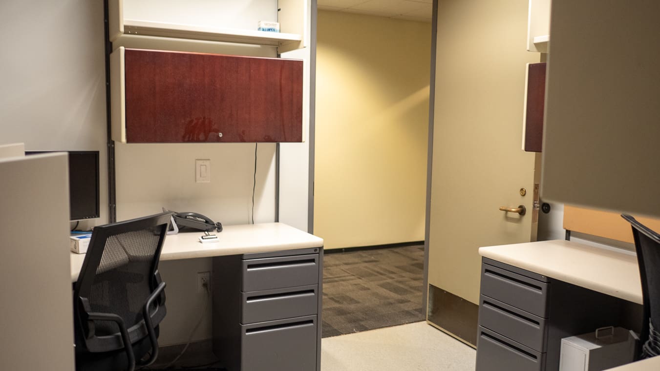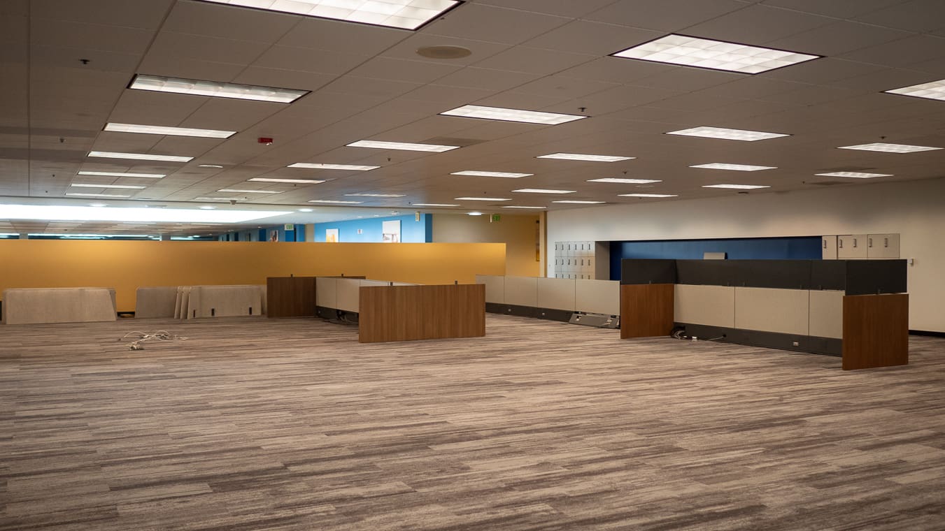 4553 La Tienda in Westlake Village is a fully dressed office space that includes furnishings throughout. This two-story office complex is situated in a campus-like setting. It features a first-floor grand staircase, open-plan workspaces, various cubicle configurations, a conference room, private offices, a cafeteria, a gym, lounge areas, and an outdoor patio and courtyard. Formerly occupied by Anthem Blue Cross, this office was built in 1989. The property is approximately 113,00 square feet and is on a 13.58-acre lot. This often-requested location also includes an enormous parking lot for cast, crew, and basecamp. The building is unoccupied and open for weekday filming.