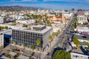 6725 Sunset Boulevard is a five-story stand-alone building in the heart of Hollywood. This creative office building has a recently upgraded lobby, courtyard, outdoor meeting spaces, and common areas. It has polished concrete floors, exposed brick walls, high open ceilings, and tremendous natural light. Suite 470 features 5,500 square feet of dressed office space with exposed brick walls that look out to the courtyard. The fifth floor boasts 15,000 square feet of office space with 360-degree city views. 6725 Sunset is a prime location with neighboring major entertainment companies, including Netflix, HBO, and Showtime. The historic Catalina Jazz Club and Javista Organic Coffee Bar occupy the ground floor level.