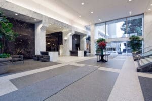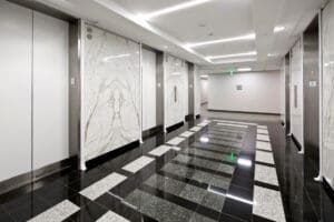 One of the most coveted office buildings in Beverly Hills, 9100 Wilshire features twin office towers connected by a beautifully updated central lobby. The 340,112 square-foot property offers dramatic views of the Hollywood Hills, Beverly Hills, Downtown Los Angeles and Century City. Located on the prestigious corner of Wilshire Blvd and Doheny in Beverly Hills. Onsite amenities include TrimanaCafe, LA Fitness, a sundry shop, valet parking and car detailing services. 9100 Wilshire is conveniently located near some of Beverly Hills’ finest shopping and dining options. With onsite management and engineering services, 9100 Wilshire is equipped with a fully integrated energy management system for optimal efficiency and comfort.