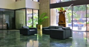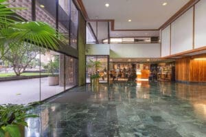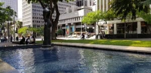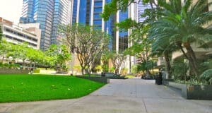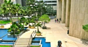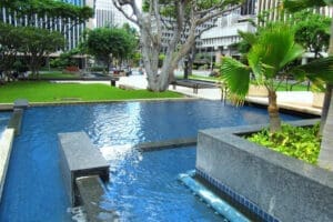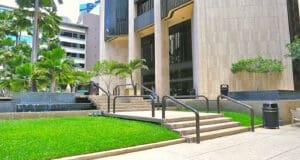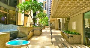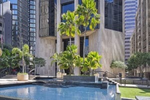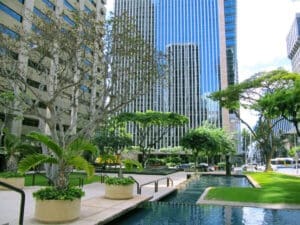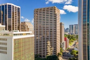 In the heart of Downtown Honolulu lies Bishop Square, one of the largest and most prestigious office complexes in the heart of the city. Bishop Square is comprised of two architecturally distinct high-rise towers totaling about 1 million square feet of office space, and is linked together by Tamarind Park, a one-acre landscaped park. The 30-story American Savings Bank Tower features an exterior of poured-in-place, ribbed concrete panels with engraved designs, which gives American Savings Bank Tower a traditional Hawaiian presence in the Honolulu skyline.