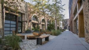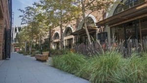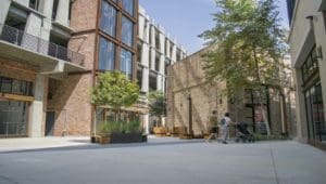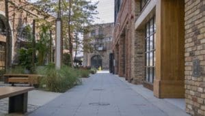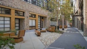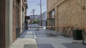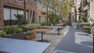 Located in the eastern section of DTLA’s revitalized Arts District, along the banks of the L.A. River and easily accessed by three major freeways, this new property infuses modern stylings with classic concrete and brick to create a compelling and unique look that is incredibly appealing. At Mateo features multiple buildings with floor-to-ceiling windows, large open spaces with 15′ exposed wood ceilings, beautiful courtyards and a rooftop lounge that features a panoramic view of the L.A. skyline. The huge rooftop deck of the 540-space parking structure, perfect for still photography, car commercials and feature films, also offers the same great view. Weekday filming is available
