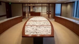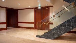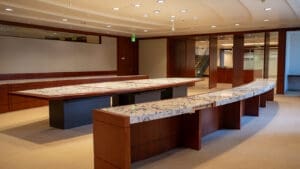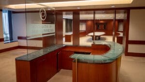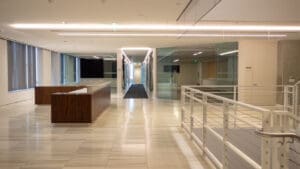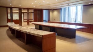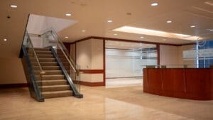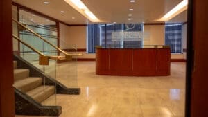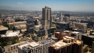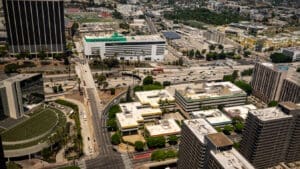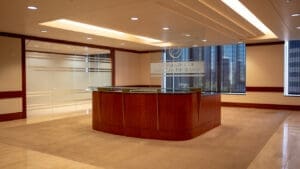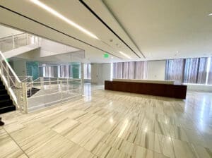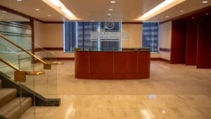 Bank of America Plaza, located on Bunker Hill, is one of the most beautiful and prestigious office properties in downtown Los Angeles. The 55-story property is situated on a 4.21-acre site that features a unique formal garden with over 200 trees and three 42-foot waterfalls.