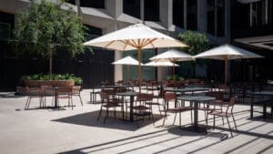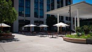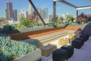Located in the heart of Los Angeles’ Fashion District, the California Market Center (CMC) provides a variety of showrooms with sweeping views of the downtown skyline and large event spaces. The property also features a fresh new lobby with a beautiful staircase and outdoor bridge that connects to the neighboring parking garage, which is also perfect for car commercials and photo shoots. Many locations within this fantastic property are now available for filming on weekdays and weekends