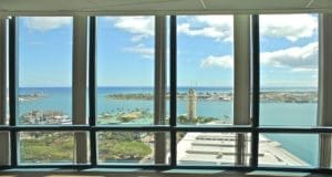 Harbor Court is a 206,771 square-foot Class-A office property strategically situated near Honolulu’s waterfront. The 31-story office building is the focal point of the downtown skyline because of its distinctive architectural features and reflective blue glass exterior. With spectacular views of the Honolulu Harbor and the Ko’olau Mountains, this is one of Honolulu’s landmark commercial office buildings.