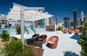 Renaissance Tower combines creativity with modern style and indoor/outdoor versatility. It’s located in the prestigious and vibrant South Park District of LA and has a dynamic feel that’s full of colorful artful touches. Renaissance Tower offers furnished model apartments and unfurnished apartments for filming, a spacious Rooftop and Pool Deck, as well as a Helipad that’s located on the 17th floor of this stunning, modern high-rise, providing access to iconic views of the downtown skyline day to night. In addition to the views, right outside the Renaissance Tower’s doors is Grand Hope Park, offering beautiful green space. The proximity to other popular filming locations, as well as the ample parking lots in the area, makes Renaissance Tower the place to film in Downtown Los Angeles.