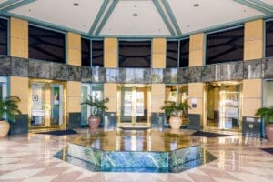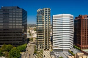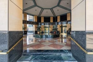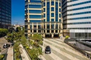 Designed by renowned architect Helmut Jahn, The Tower‘s exterior and lobby are easily recognizable by the standout Verde Antique granite, Brazilian Navy marble and Kasotalimestone. A 30-foot high open-air solarium, featuring a distinct water fountain, leads to an expansive marble lobby. Suites enjoy floor-to-ceiling glass windows with views of Bel Air, Getty Center and the ocean. Amenities include state-of-the-art communication systems, fiber optics and high-speed internet, a restaurant and an easy walk to numerous other restaurants in Westwood Village. This Westwood office building is Energy Star Certified by the EPA and has a fully integrated energy management system for optimal efficiency and comfort.